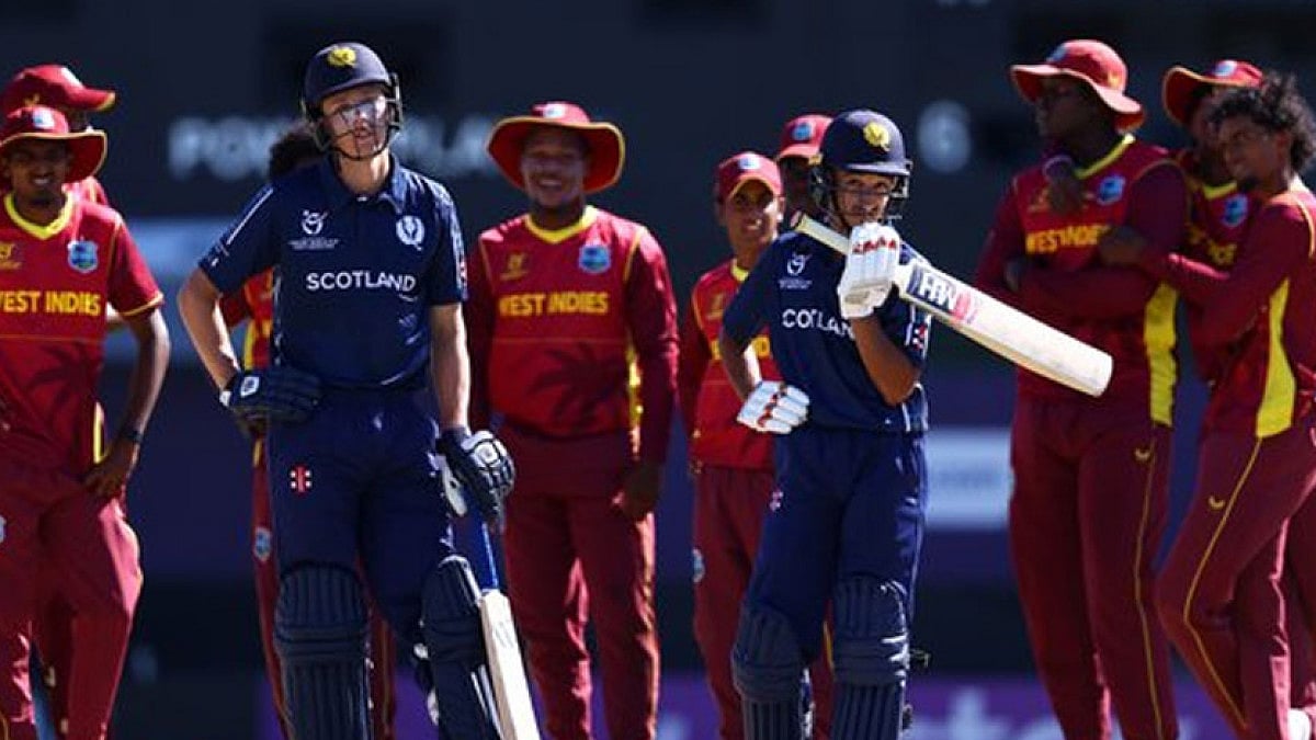 In another Group D match in Basseterre, West Indies thrashed minnows Scotland by seven wickets to register their first win of the tournament.