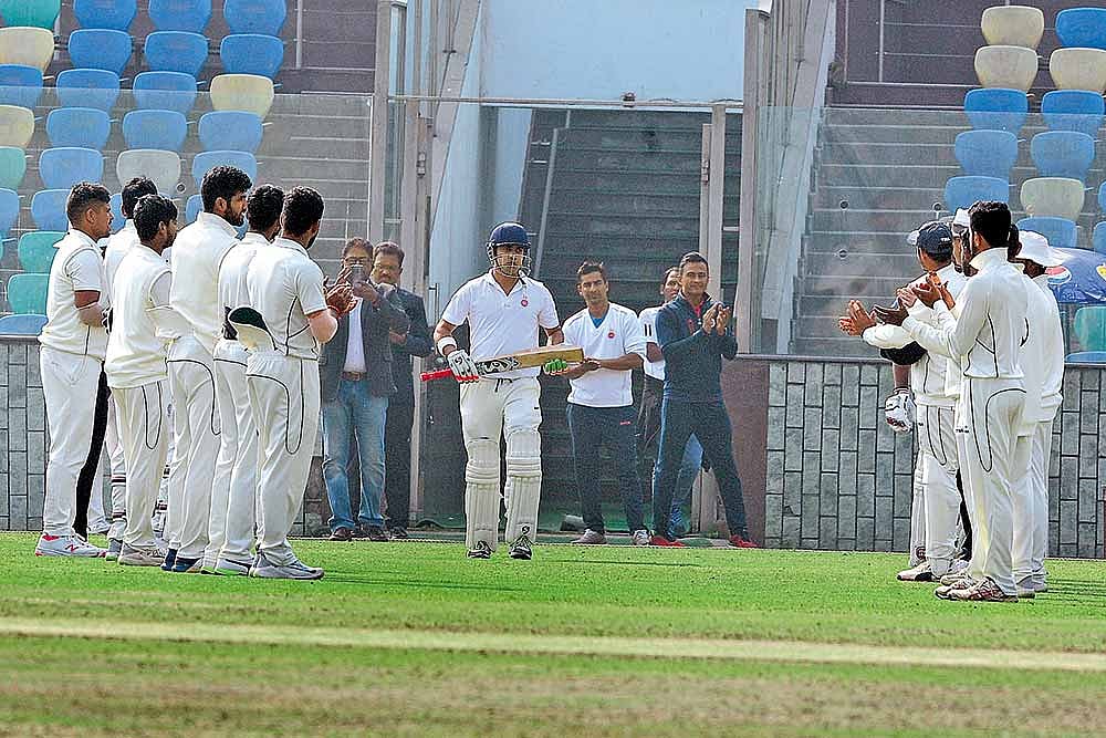 But Gambhir’s latest memento is a silver plaque that the Delhi and District Cricket Association presented him on December 9 after his last competitive match, a draw against Andhra in the Ranji Trophy. Most aptly, the 37-year-old left-hander signed off with a ton. It signalled the end of a sumptuous, satisfying career. Spectators and viewers would remember his sturdy strokeplay—the punches and fierce cuts on the off; dances down the track to hoist spinners out of the ground, the bat not completing the pleasing arc of a complete follow-through (like, say Yuvraj Singh) but held in mid-air, lending his batsmanship not languid, fluid grace, but an air of solidity and dependability.