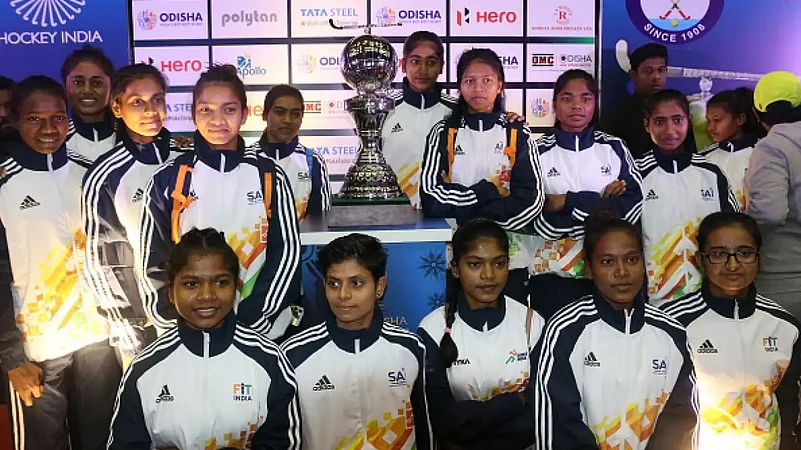 4- The Indian junior hockey team is displaying the trophy during a group photo session for the upcoming 15th edition of the Men's FIH Hockey World Cup in Kolkata, on December 6, 2022.