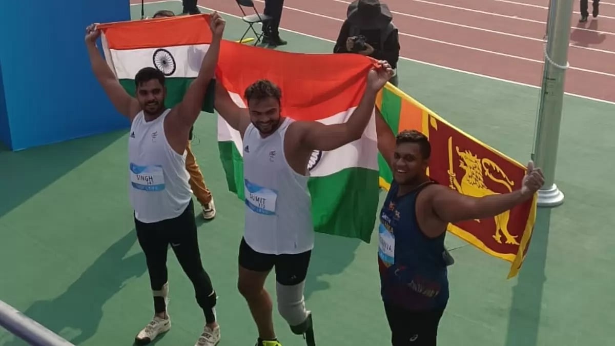 Sumit clinched gold with a remarkable throw of 73.29 meters, setting new World, Para Asian and Games records. Pushpendra Singh seized the bronze with a strong throw of 62.06 meters. The 25-year-old broke his own previous world record of 70.83m which he had thrown while winning gold at the World Para Athletics Championships in Paris earlier this year.