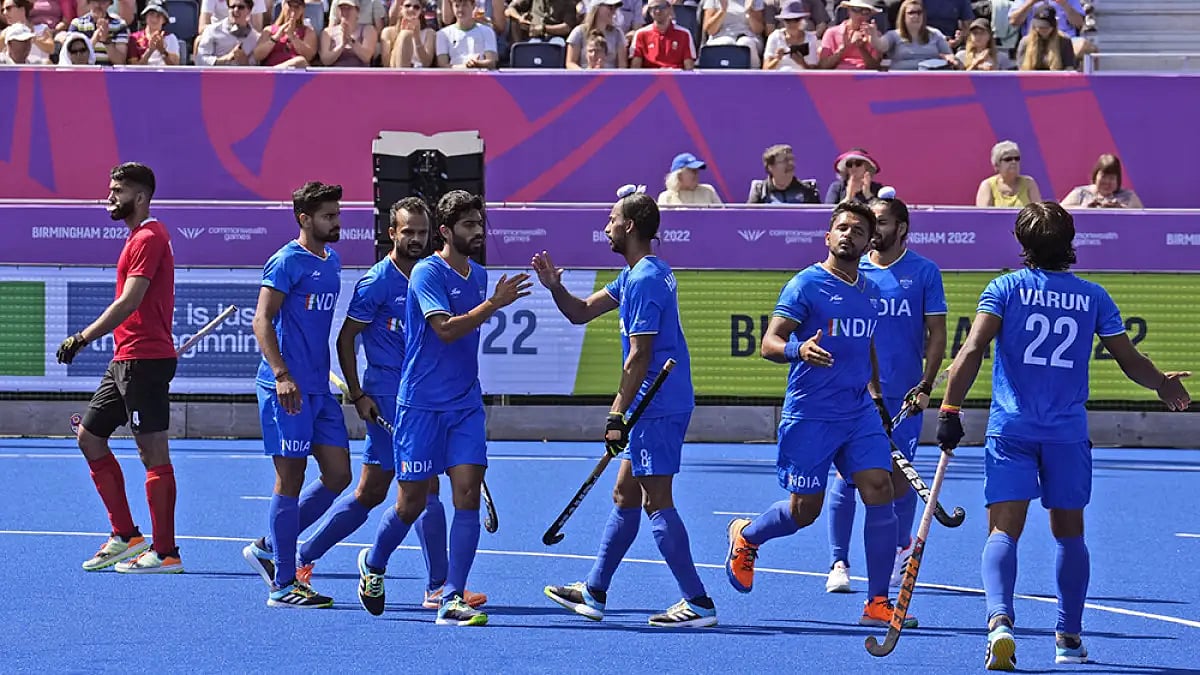 India men's hockey team produced a facile 8-0 win over Canada in its third pool game at Commonwealth Games 2022 on Wednesday. The win helped the Tokyo Olympic bronze medallist move to the top of the pool ahead of England and inch closer to a semi-final spot. Harmanpreet (7th, 54th minute) converted two penalty corners while Akashdeep Singh (38th, 60th) scored two fine field goals. Amit Rohidas (10th), Lalit Upadhyay (20th), Gurjant Singh (27th) and Mandeep Singh (58th) were the other goal scorers. India's next fixture is against Wales on Thursday.