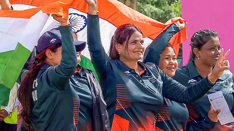 The Indian quartet of Lovely Choubey (lead), Pinki (second), Nayanmoni Saikia (third) and Rupa Rani Tirkey (slip) defeated South Africa 17-10 to win the gold medal in women's 'fours'. It was India's maiden final appearance in the women's fours format of the competition. And it was India's first-ever Commonwealth Games medal in lawn bowls.