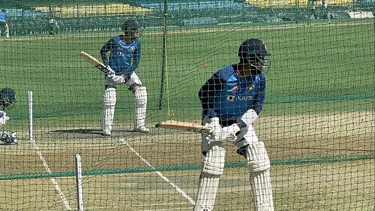 Both batted in adjacent nets for around 30 minutes under the supervision of head coach Rahul Dravid.