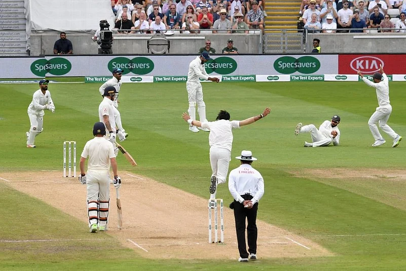 England were rocked at 39 for the loss of 3 wickets, with their best batsman already back in the pavilion. Dawid Malan and Jonny Bairstow looked set to steady the ship thereafter, but having scored 20 from 64 and 28 from 40 deliveries respectively, both the middle-order batsmen edged deliveries from an on-fire Ishant Sharma to the slips to quash any such hopes.