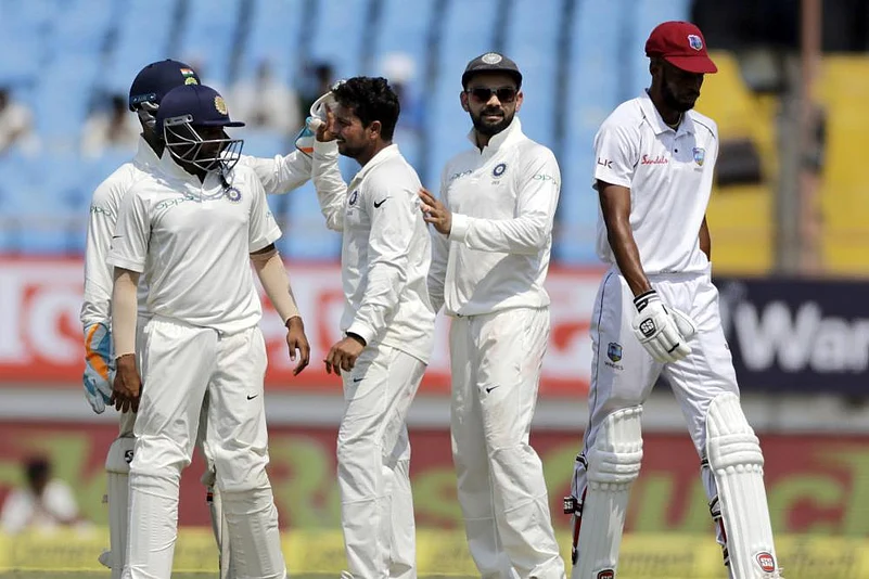 Chinaman bowler Kuldeep Yadav on Saturday claimed his first five-wicket in Test as India move closer to a big win against the West Indies at Rajkot.