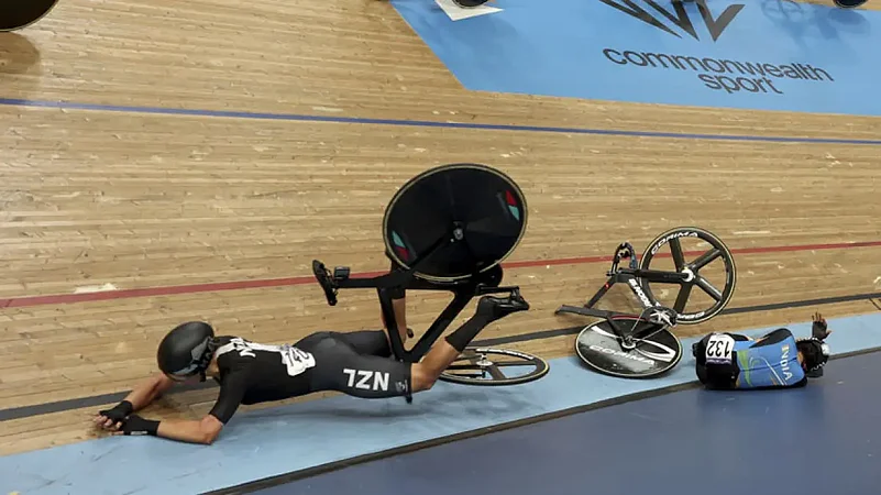 New Zealand's Bryony Botha was also caught by the crash, as her cycle ran over Meenakshi and Botha too fell from her bike.