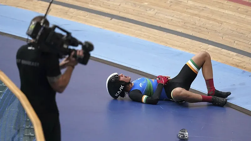 England's Laura Kenny won the gold in the event. A video of Meenakshi's crash has going viral on social media.