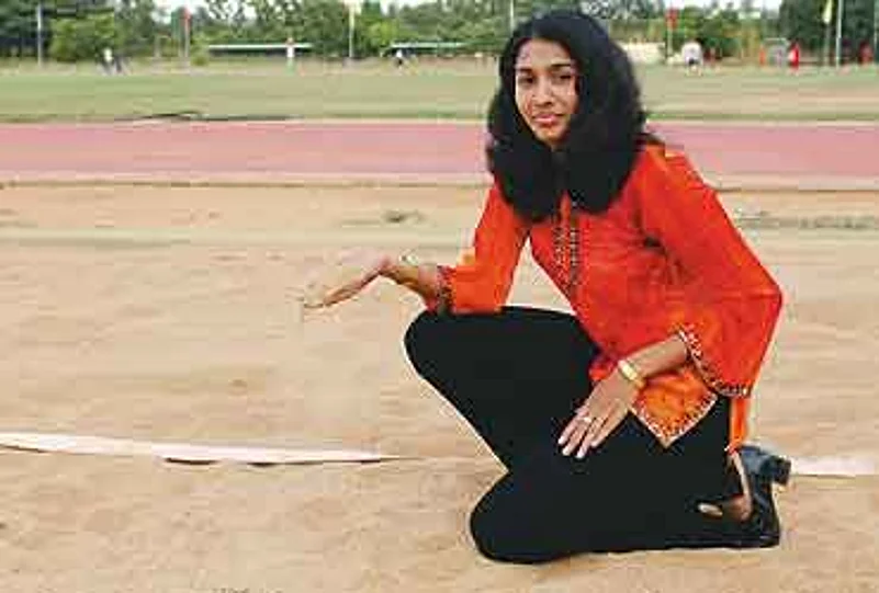 Somebody ask the government to hide those shoes that they send her. "When you stand before the whole world wearing the tricolours and use those kits," her husband Bobby George says, "it's very embarrassing". And those tights that they send her. That too may not be necessary. "Because how can they be tights if they are two sizes larger." But the establishment did help her. A Rs 13.79 lakh dole helped her train in the US and Europe for about five months. She went to moderate gyms. Worked hard with long jump record holder Mike Powell and is one of the top contenders for a medal at Athens.