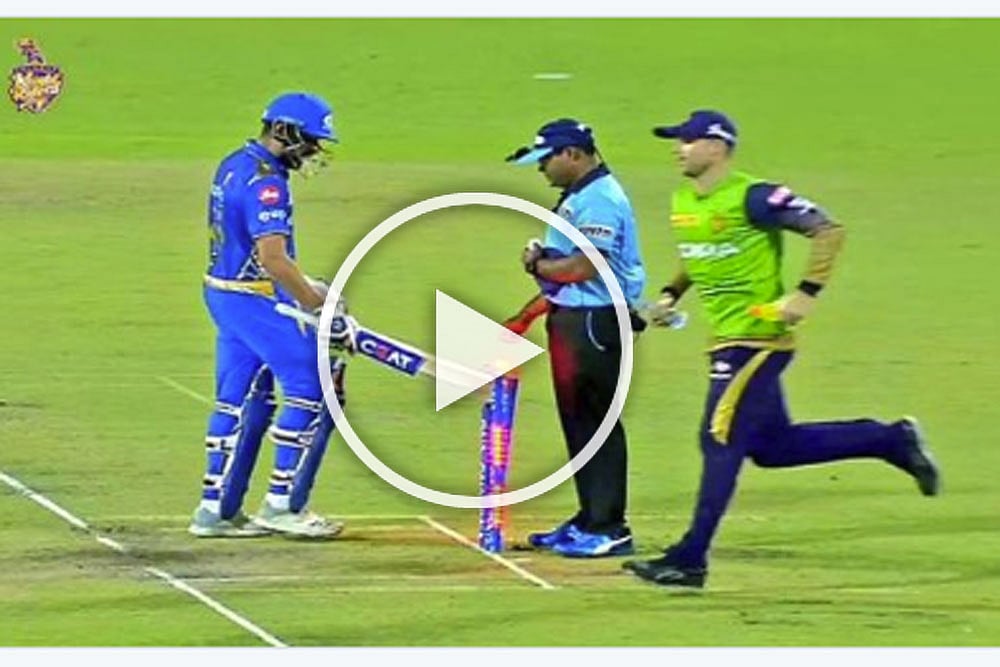 In a deplorable show of petulance, Rohit hits the stumps at the non-striker's end while walking back after given out LBW in the fourth over even as Nitin Menon stood there in his position. And it's Rohit's 100th match as a captain in the IPL.