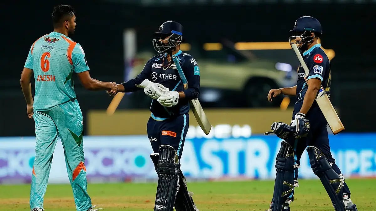 Brief Scores: Lucknow Super Giants 158 for 6 in 20 overs (Deepak Hooda 55, Ayush Badoni 54; Mohammed Shami 3/25) lost to Gujarat Titans 161 for 5 in 19.4 overs (Rahul Tewatia 40 not out, Hardik Pandya 33; Dushmantha Chameera 2/22) by five wickets.