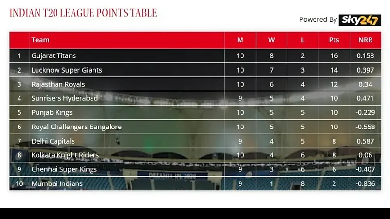 Despite the loss, Gujarat Titans are still on top of the standings with 16 points followed by fellow debutants Lucknow Super Giants who are on 14 points from 10 games. With both newcomers are certain to reach the last four stage, unless any miracles happen, the fight for the remaining two spots will be between Rajasthan Royals, Sunrisers Hyderabad, Royal Challengers Bangalore and Delhi Capitals.