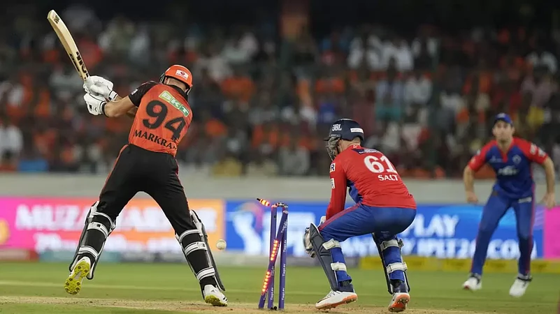 Delhi Capitals gradually strengthened their grip on the game by taking four wickets -- Agarwal, Rahul Tripathi (15), Abhishek Sharma (5) and Aiden Markam (3) in quick succession in the middle overs, and allowing a mere three fours between overs 5 to 15 which highlighted SRH’s plight.