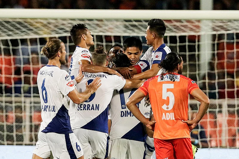 Bengaluru FC were the early aggressors and had an opportunity to score in the 15th minute when Matt Mills' poor first-touch allowed Miku to nick the ball off the defender. The Venezuelan striker dribbled into the box before curling the ball over the bar from a tight angle.