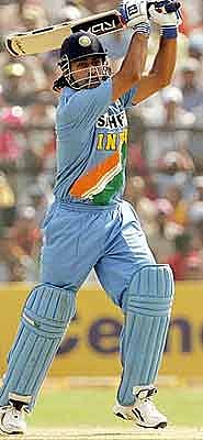 India suffered further reverses when Plunkett showed the door to Yuvraj Singh(4) and Suresh Raina (2) in his first two overs. While Yuvraj dragged the ballonto his stumps while going for a pull, Raina miscued a glance to finish in thehands of Mathew Prior who brought off a good catch as India were reduced to63-4.