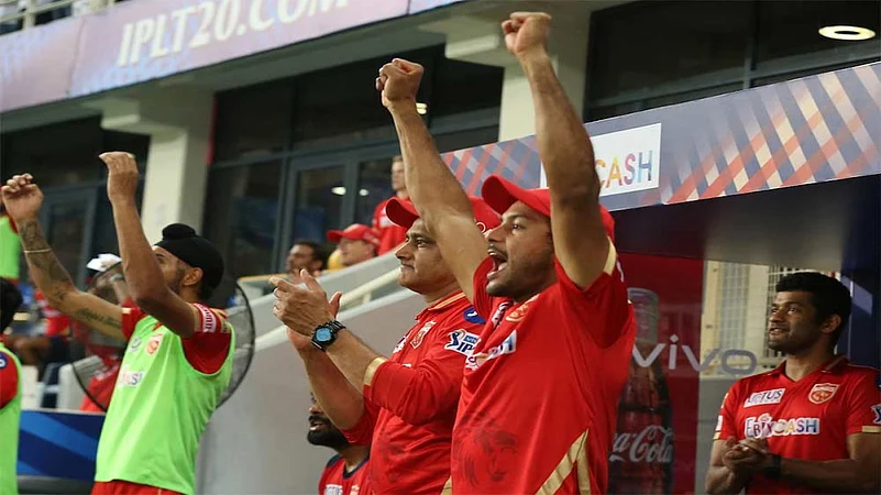 Punjab Kings boosted their chances of making the IPL play-offs with a five-wicket win over Kolkata Knight Riders. Smart batting by skipper KL Rahul and Shahrukh Khan shaped the crucial IPL 2021 win in Dubai on Friday. Rahul scored 67 runs off 55 balls and shared a 70-run stand with fellow opener Mayank Agarwal (40), knocking off a 166-run target with three balls to spare. (Photos: BCCI-IPL)