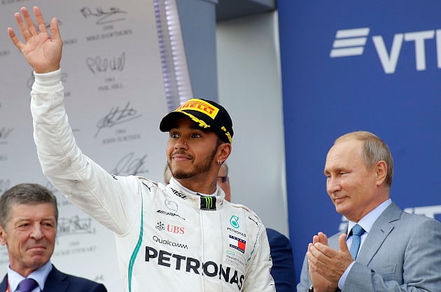 The Briton started second on the grid, claimed an accomplished victory, aided by Mercedes team tactics. Team-mate Valtteri Bottas finished second to give the German team a 1-2 finish in front of Russian President Vladimir Putin.