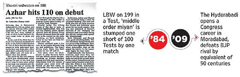 On the last day of Year 1984, a lanky young man from Hyderabad first played cricket for India, in Calcutta against the touring Englishmen. At stumps on the first day, Azharuddin was on 13 runs; rain and smog allowed him to add only eight runs in 20 minutes on new year’s day; January 2 was rest day. On the third day, Azhar made his first Test century—the ninth player do so on debut for India. And then, the next two Tests saw him score two more centuries, an unprecedented feat.