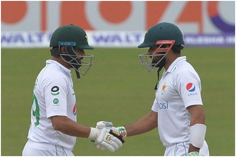 The tourists were 188 for two with Azhar Ali scoring his 34th half-century. At close, Babar Azam was batting on 71. Azhar Ali was unbeaten on 52.The duo has added 118 runs for the third wicket.