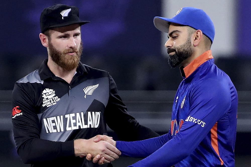 Another humiliating defeat for India as New Zealand thrashed a clueless Virat Kohli & Co by eight wickets with 33 balls to spare in their second Super 12 match of ICC T20 World Cup 2021. Seven days after suffering a 10-wicket hammering at the hands of arch-rivals in Dubai, a reluctant, hesitant India lost the plot against the Kiwis at the same venue on Sunday for a second straight defeat. Meaning, India's chances of making the last four now are out of their hands. India lost the toss, then struggled to score runs freely. Ravindra Jadeja top-scored for India with a 19-ball 26. Trent Boult (3/20) led the Kiwi attack with a brilliant spell of pace bowling. Then, Martin Guptill (20 off 17), Daryl Mitchell (49 off 35) and Kane Williamson (33 not out off 31) played good knocks. India made a couple of changes, bringing in flamboyant Ishan Kishan for unfit Suryakumar Yadav and 'on-demand' Shardul Thakur of Bhuvneshwar Kumar. But nothing worked for the Men in Blue, even with Hardik Pandya playing as a pure all-rounder. India will now take on Afghanistan (November 3), Scotland (November 5) and Namibia (November 8) -- all minnows, and they can still have six points to push for a semi-final spot. But the Kiwis are also playing the same three. They next face Scotland on November 3. In fact, New Zealand are not out of the wood yet. Afghanistan, who earlier in the day, hammered debutants Namibia, will be difficult to contain. They face off on November 7. For the record, India have lost all three T20 World Cup matches against New Zealand. And in ICC events, it's 1-8. May be, some 'mauka' is here. Catch highlights and cricket scores of IND vs NZ, T20 World Cup match here: