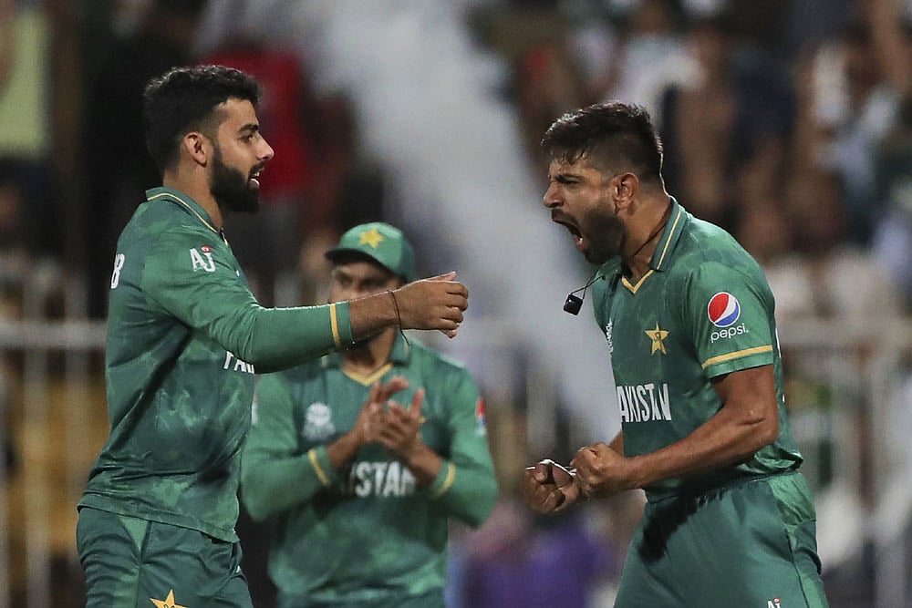 India on Sunday, New Zealand on Tuesday. Pakistan are now the favourites. Two days after breaking the World Cup jinx against arch-rivals India, Babar Azam & Co registered another comprehensive win, by five wickets, in their second ICC Men's T20 World Cup 2021, Super 12 match. With two wins in two outings, Pakistan now sit at the top of Group 2 table with four points (net run rate +0.738). Azam won the toss, and opted to bowl first again. Haris Rauf took four wickets to help Pakistan restrict the Kiwis to 134/8 with none of the batters reaching 30. Then Mohammad Rizwan hit 33 off 34 even as New Zealand keep the fight alive with wickets in tensed middle overs. Then veteran Shoaib Malik (26 off 20) and flamboyant Asif Ali (27 off 12) stitched an unbeaten 48-run stand in 23 balls for the sixth wicket to take the 2009 champions home in Sharjah, UAE. Next, Pakistan face Afghanistan on October 29 and New Zealand take on India on October 31. Catch highlights and cricket scores of PAK vs NZ, ICC T20 World Cup 2021 match here: