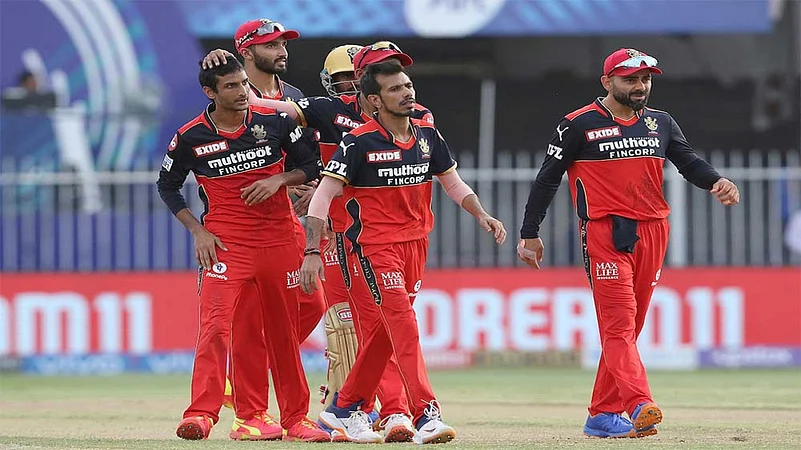 Glenn Maxwell smashed 57 and then Yuzvendra Chahal spun a web around Punjab Kings as they once again bungled a chase allowing Royal Challengers Bangalore book a play-off berth with a six-run victory in an IPL 2021 game in Sharjah on Sunday. Maxwell's 34-ball-57 propelled RCB to 164 for 7 which is the highest team total in Sharjah this season and then Chahal owned the middle-overs with another game-changing spell of 3/29 which saw KL Rahul's team finish at 158 for 6. With 16 points from 12 games, RCB became the third team after Chennai Super Kings and Delhi Capitals to make it to the last four stage. (Photos: BCCI-IPL)