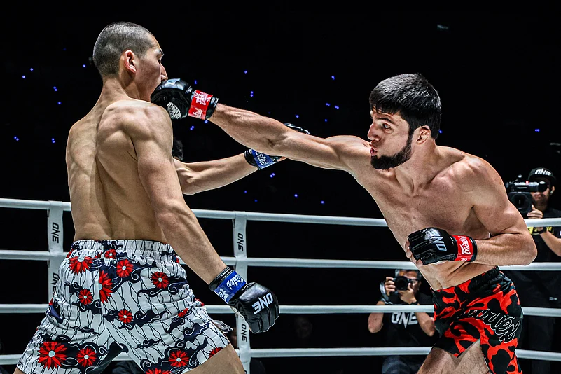 In the second round, Karimov attempted a spinning backfist, but the move left him exposed. Zhanyshbek Uulu then took advantage to deliver a sharp punching combination that shifted the momentum.