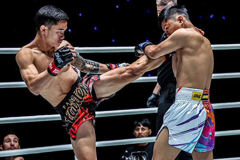 Pichitchai’s momentum grew further in the second frame. He closed the distance with a sharp left punch and followed up with a knee and an elbow to score a knockdown.