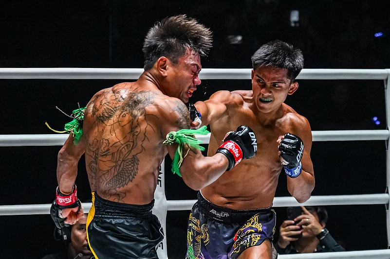 It was all gas and no brakes in the 119-pound catchweight Muay Thai duel between Paeyim Sor Boonmeerit and Apidet FiatPathum.