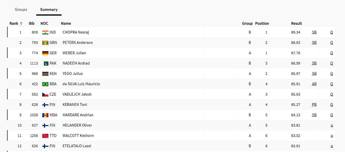 Pakistan's Arshad Nadeem, who is the reigning Commonwealth Games champion, also qualified for the finals with a throw of 86.59m.