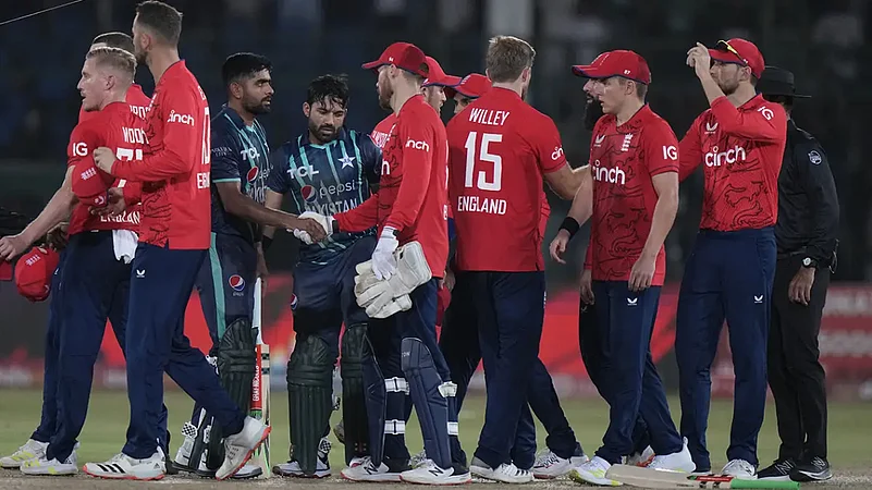 Babar Azam’s second T20I hundred (110 not out off 66) and Mohammad Rizwan (88 not out off 51) produced a stunning 203-run stand for the opening wicket as Pakistan crushed England by 10 wickets to level the three-match series 1-1 in Karachi on Thursday. Batting first, England rode on Moeen Ali's 23-ball fifty and contributions from other batters to post 199/5. In return, the duo of Babar-Rizwan tormented the English bowlers to overhaul the target with three balls to spare. It was the first double century stand for Pakistan and they also became the first team to chase down a 200-plus total with all wickets intact.