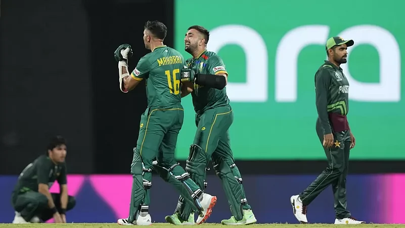 After 25 games bearing considerable victory margins, the ICC Cricket World Cup 2023 finally produced a bonafide thriller. In the end, Keshav Maharaj held his nerve to see South Africa through to a nail-biting one-wicket win in Chennai. Led by pace spearhead Shaheen Shah Afridi, Pakistan's bowlers turned things around dramatically to cheaply account for South Africa's lower-middle order and leave them eight down with 21 still to get. But No. 11 Tabraiz Shamsi hung on with Maharaj to snuff out Pakistan's hopes. Earlier, half-centuries from captain Babar Azam and southpaw Saud Shakeel and a handy 36-ball 43 from Shadab Khan, who was later replaced by Usama Mir as the ODI World Cup's first-ever concussion substitute, propelled the Men In Green to a challenging total of 270. However, they were left wondering what could have been, had they not been bowled out with 20 balls still to go. (Scorecard | Report | Point Table | Full Coverage)
