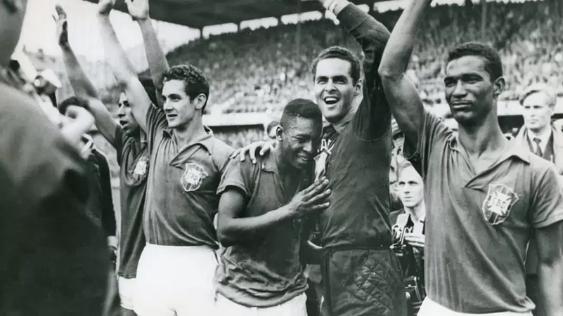 Pelé started as a reserve in 1958 but became a key part for the team that won the final against Sweden. His first goal in that game, in which he lobbed the ball over the head of a defender and then raced around him to volley it home, was voted as one of the best in World Cup history. He scored six goals overall in the tournament.