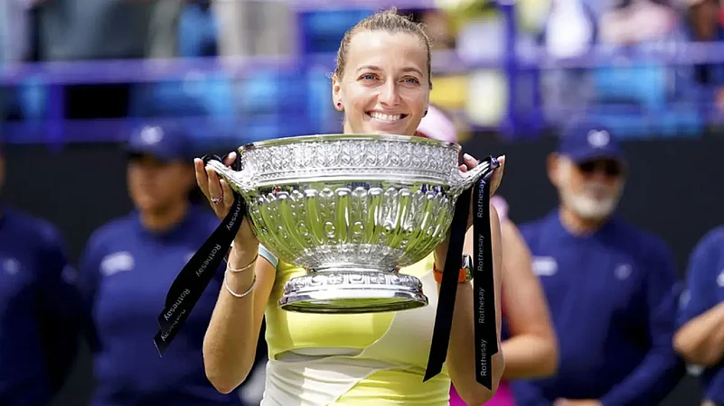 Two-time Wimbledon champion Petra Kvitova tuned up for the Grand Slam tournament by overpowering Jelena Ostapenko 6-3 6-2 to win the Eastbourne title on Saturday. (More Tennis News)