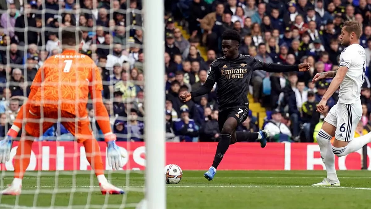 With Leeds pressing, Arsenal defender William Saliba gave away a penalty for handling in the area. Bamford stepped up but sent the ball wide.