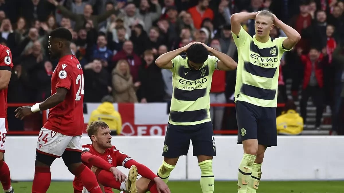 City then conceded a second-half equalizer and was held at Nottingham Forest to a surprising 1-1 after wasting chances to put the game away. The normally prolific Erling Haaland was guilty of a glaring double miss when he first hit the crossbar and then fired the rebound over the net from close range in the second half.