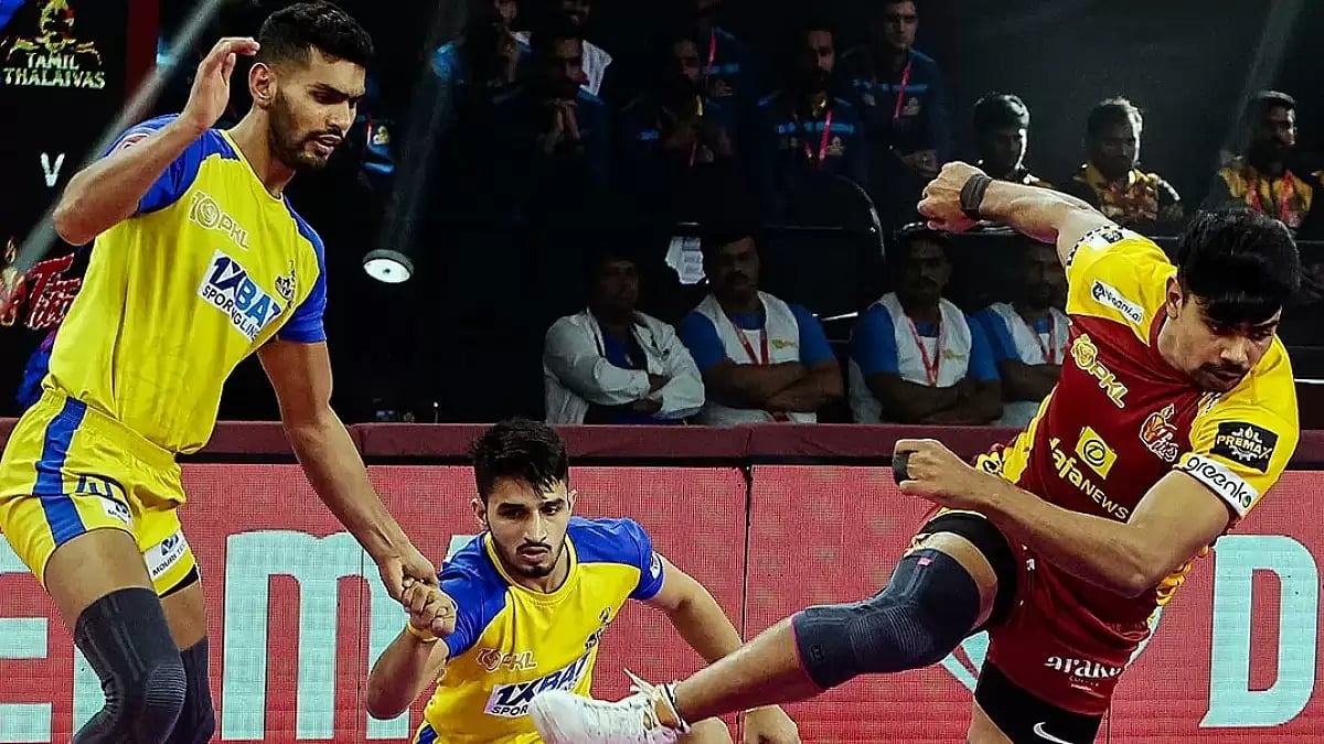Sehrawat tried to jump over the defenders, but Sahil Gulia pulled off a brilliant tackle to help Thalaivas hold the lead at 25-24 in the 32nd minute.