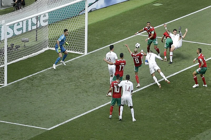 But his plans were torn apart within minutes at the Luzhniki Stadium as Ronaldo wriggled free of the imposing Da Costa to bury an unstoppable header past a helpless Monir El Kajoui.