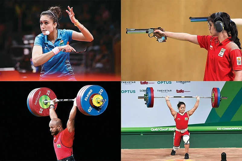 That’s no reason to cavil though—it’s still a great performance by our athletes. Among the outstanding individual performers, 16-year-old shooting star Manu Bhaker, who clinched the 10m air pistol gold with unerring ease, and the two golden Chanus from Manipur in weightlifting—Saikhom Mirabai (48kg) and Khumukcham Sanjita (53kg)—got the top spot with virtuoso displays. “I was with these girls as a government observer at the Commonwealth Weightlifting Championships (CWC) last September, when we won several medals. That competition was also held at the same auditorium in Gold Coast as this CWG event. Since September, their performance has been good. I also monitored their training after the CWC, and I was sure they will win gold,” Karnam Malleswari, India’s lone Olympic weightlifting medallist, tells Outlook.