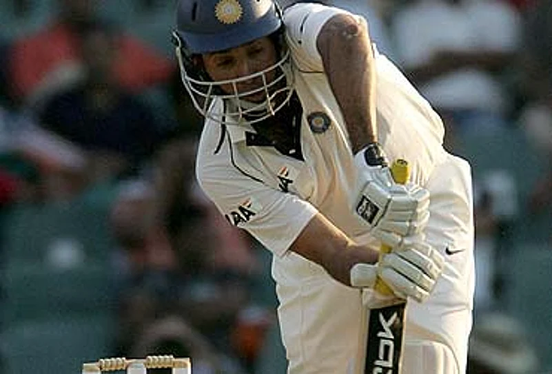 Even Sourav Ganguly, turning his arm over for an over, hit Kallis on hischest with a delivery which jumped.