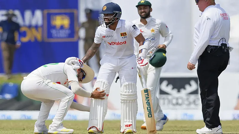 As many as 12 wickets fell on the opening day of the first Test between Sri Lanka and Pakistan at Galle International Stadium, Galle. At the close of play on Saturday, Pakistan were 24/2 in reply to Sri Lanka's 222. Kasun Rajitha and Prabath Jayasuriya got the wickets of Abdullah Shafique and Imam-ul-Haq respectively, both LBWs. Earlier, Dinesh Chandimal hit 76 even as Shaheen Afridi took four wickets. Hasan Ali and Yasir Shah got two wickets each.