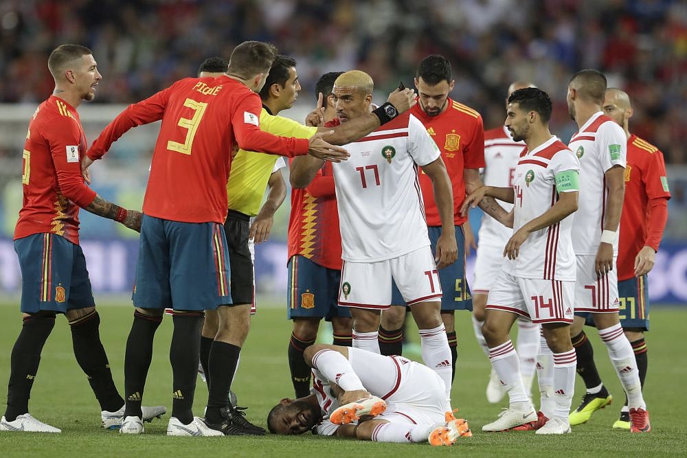 Earlier, a mix-up by Andres Iniesta and Sergio Ramos gifted Morocco its first goal of the World Cup, with Khalid Boutaib pouncing on the loose ball and scoring in the 14th minute. Iniesta made amends five minutes later by setting up Isco at the other end to bring Spain level at halftime.