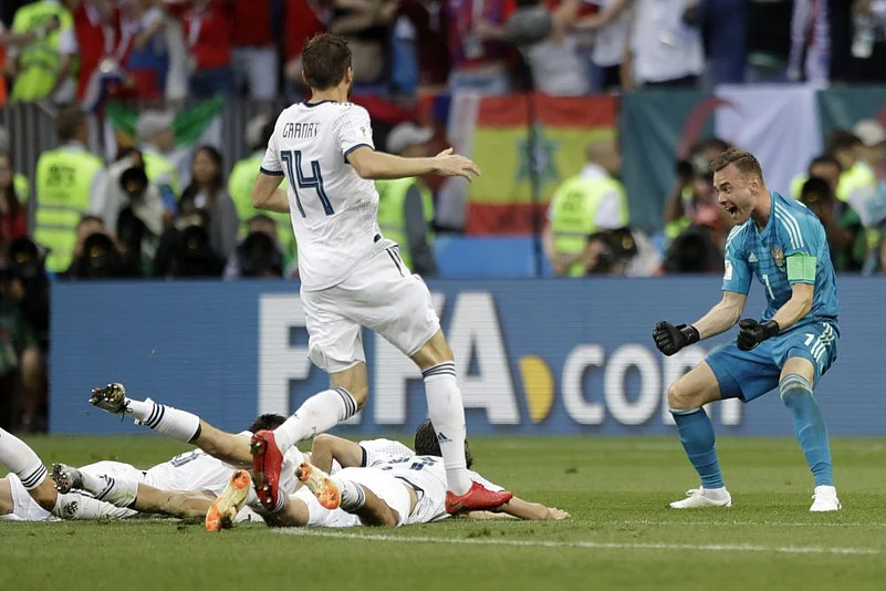 Russia endured a tense wait when Kuipers was in communication with the video assistant referee following a late tug on Pique in the box, before Akinfeev's shootout heroics clinched an unforgettable triumph.
