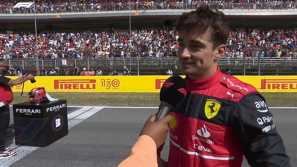 Leclerc went 1 minute, 18.750 seconds around Circuit de Barcelona-Catalunya. He dropped Verstappen in a Red Bull to second by a margin of 0.323 seconds as Leclerc won his fourth pole of the season and 13th of his career.