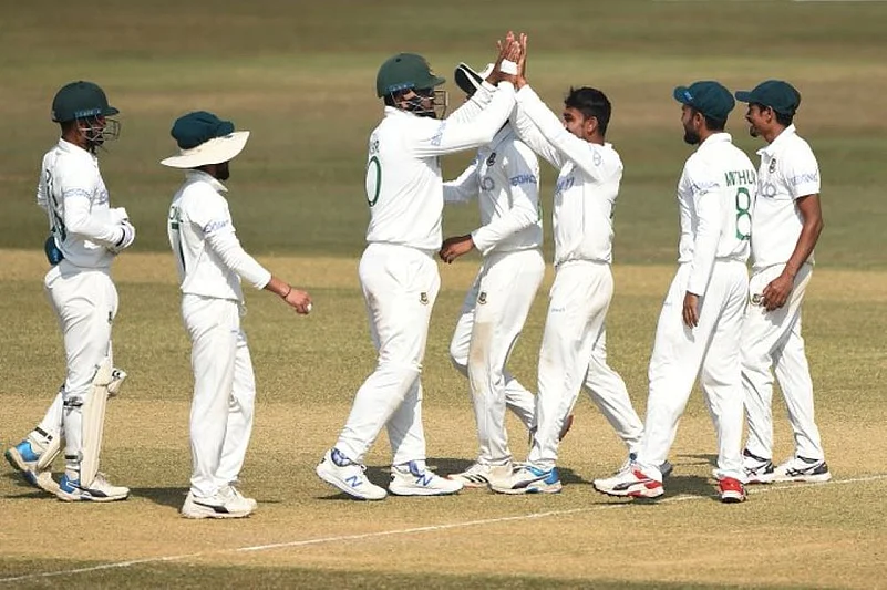 Resuming the day on 47-3, Bangladesh declared its second innings on 223-8 with Liton Das playing an important role alongside the captain.