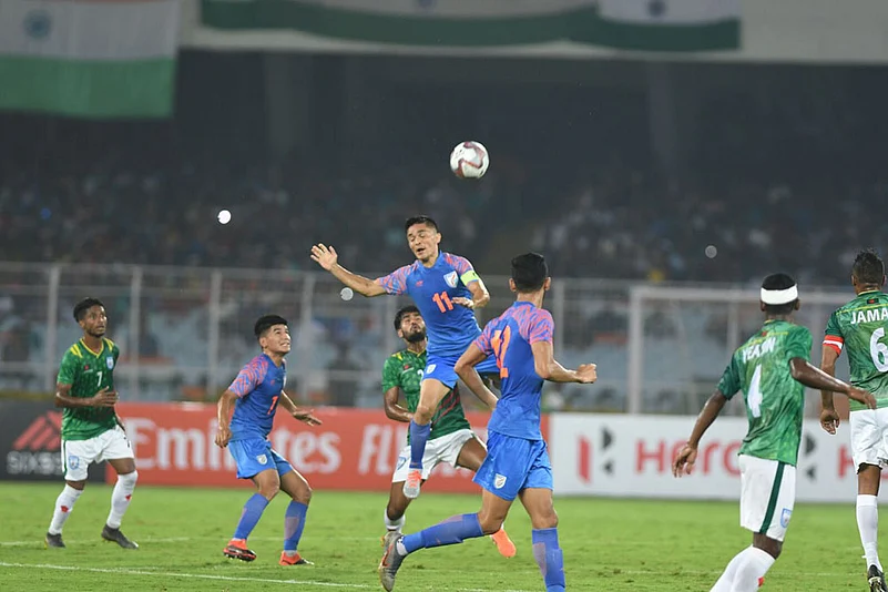 The Indian national football team crashed to a disappointing 1-1 draw Vs Bangladesh in their 2022 FIFA World Cup qualifier fixture, at the Salt Lake Stadium on October 15. After the match, Blue Tigers' captain Sunil Chhetri took to Twitter to express his regret about his team's performance despite a packed stadium, boasting immense home support.
