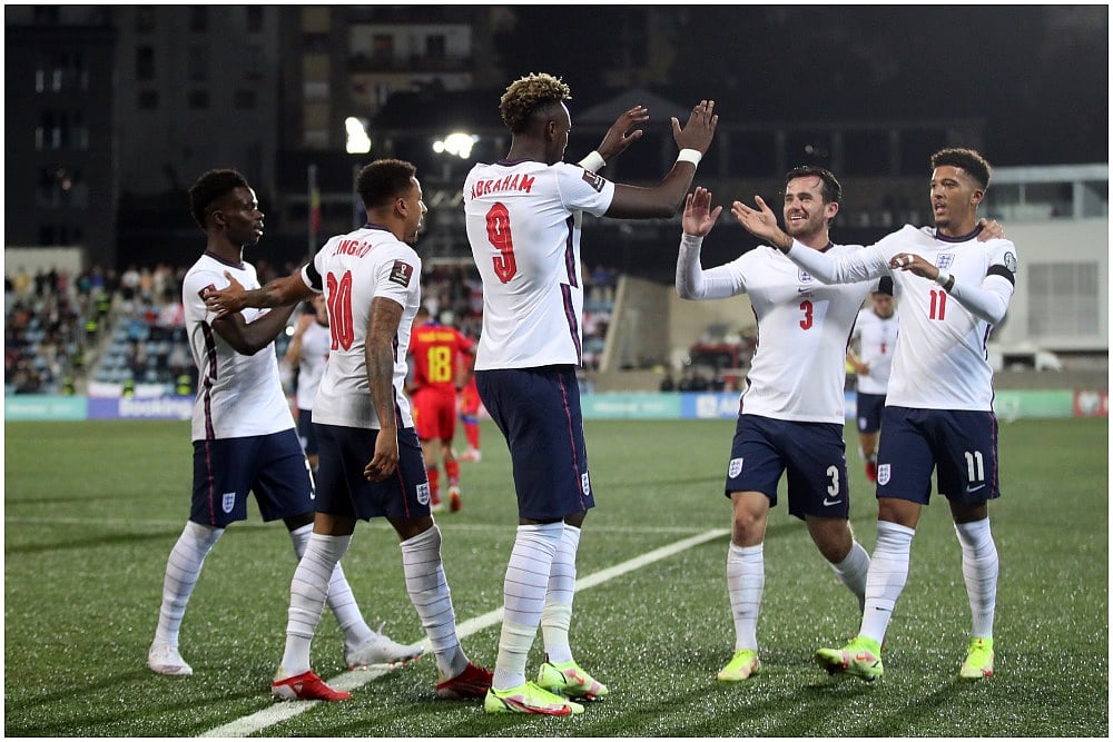 England cruised to yet another rout, 5-0 at Andorra, though is still only four points clear of surprise second-place Albania. Five different players scored against the 156th-ranked Andorrans: Ben Chilwell and Bukayo Saka in the first half and Tammy Abraham, James Ward-Prowse and Jack Grealish in the second.