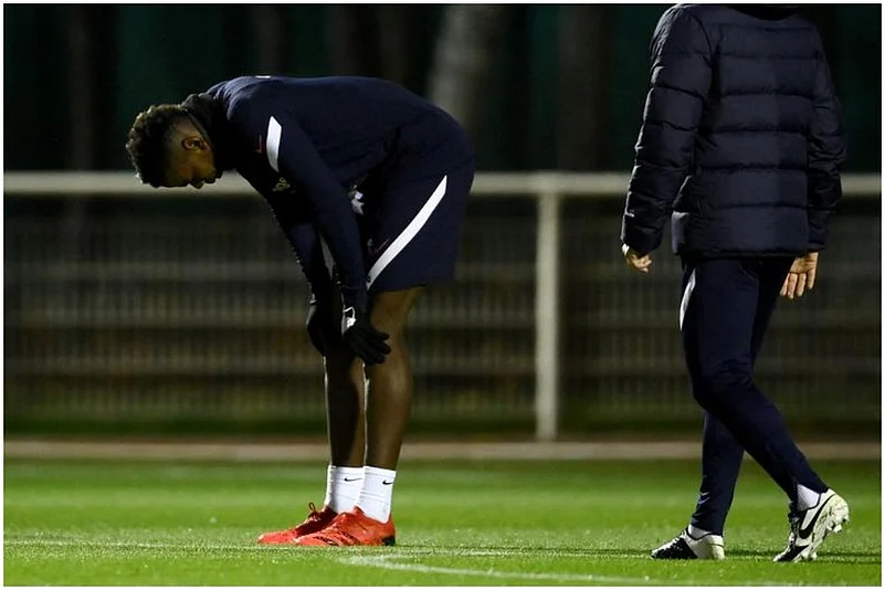 Video footage on French media showed the Manchester United midfielder pull up after taking a shot in training on Monday, before hobbling away.