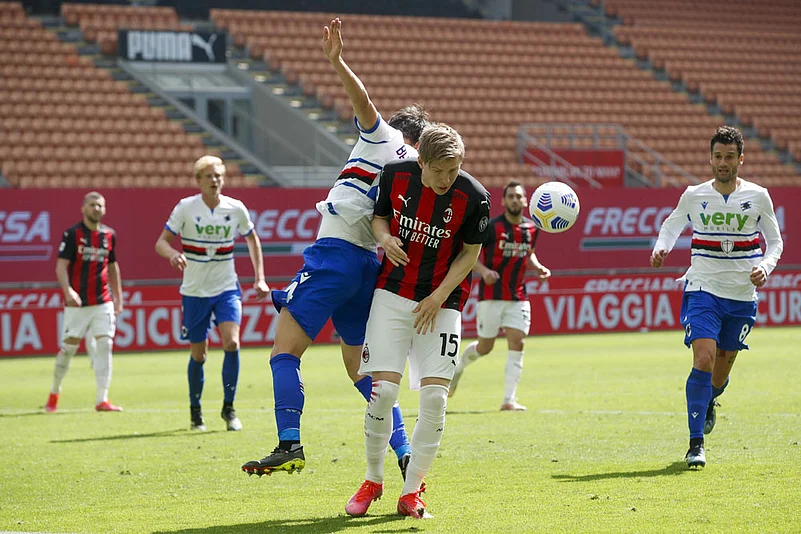 Samp winger Mikkel Damsgaard did most of his best work in nullifying the Milan threat through Castillejo down the right flank.