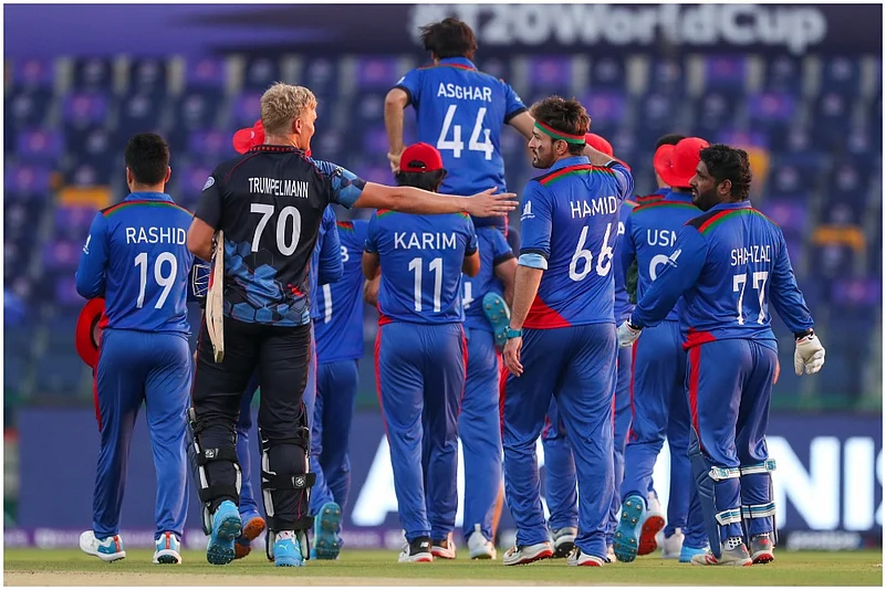 Afghan was out in the penultimate over off Trumpelmann after hitting three fours and one six. Several Namibia players shook hands with Afghan while he walked off the ground.