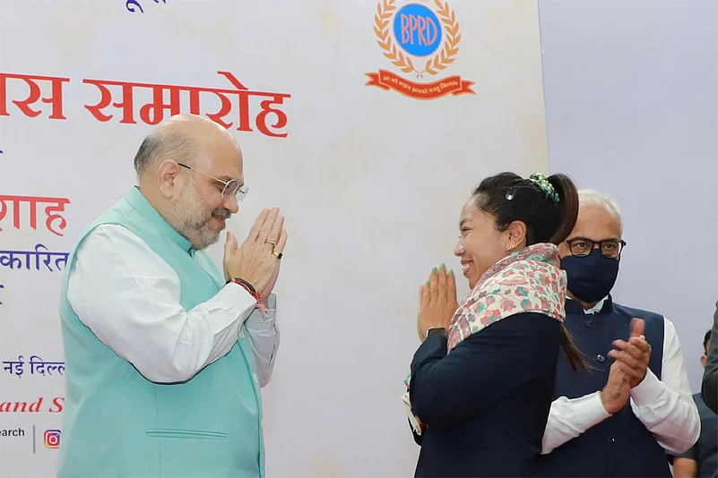 The 27-year-old sportsperson, appointed as an additional superintendent of police in her home state Manipur after the recent win at the summer games, was honoured during the 51st Raising Day celebrations of the Bureau of Police Research and Development (BPR&D), a central government think tank.